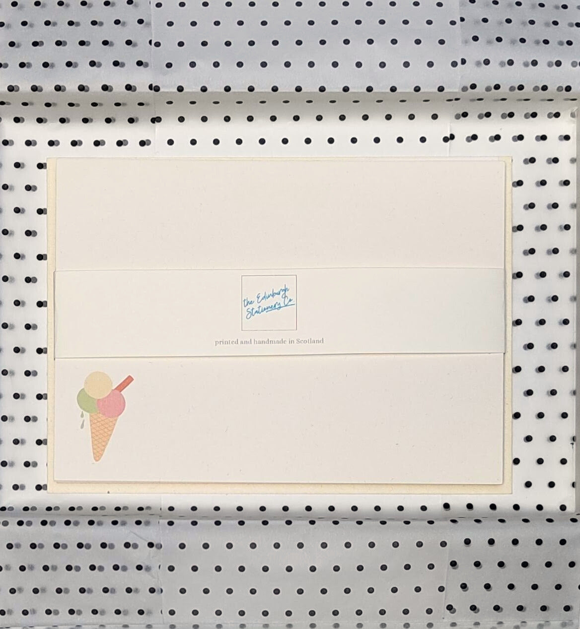 Pack of 12 Notecards ft. our ice cream design. Choice of envelopes: dusty blue, moss green, blush pink, pearl white or kraft.